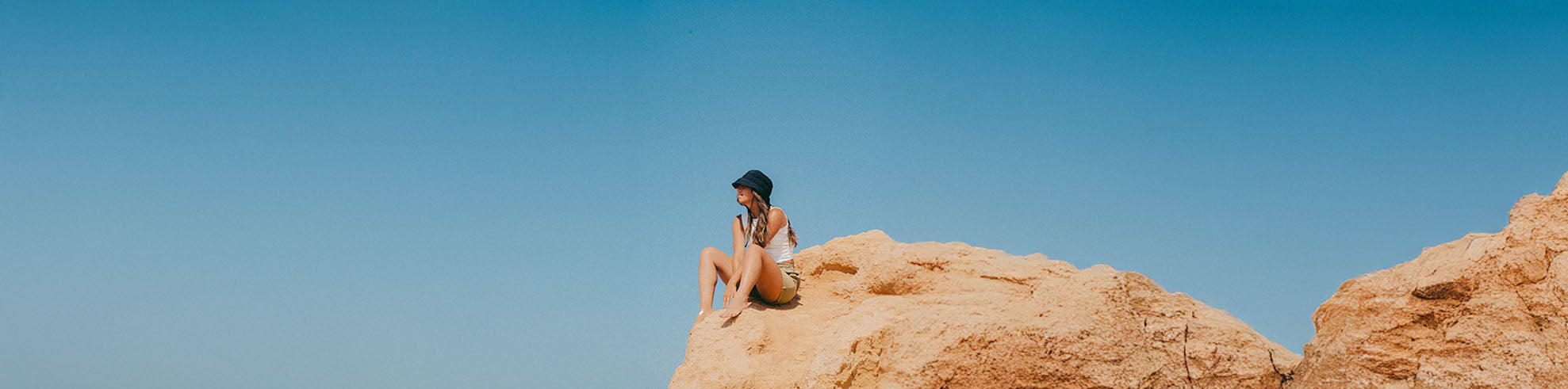 Pair it with the “Flow Cocoon” poncho after the swim Or throw on the Drift Shield bucket hat when you’re out on the sand.