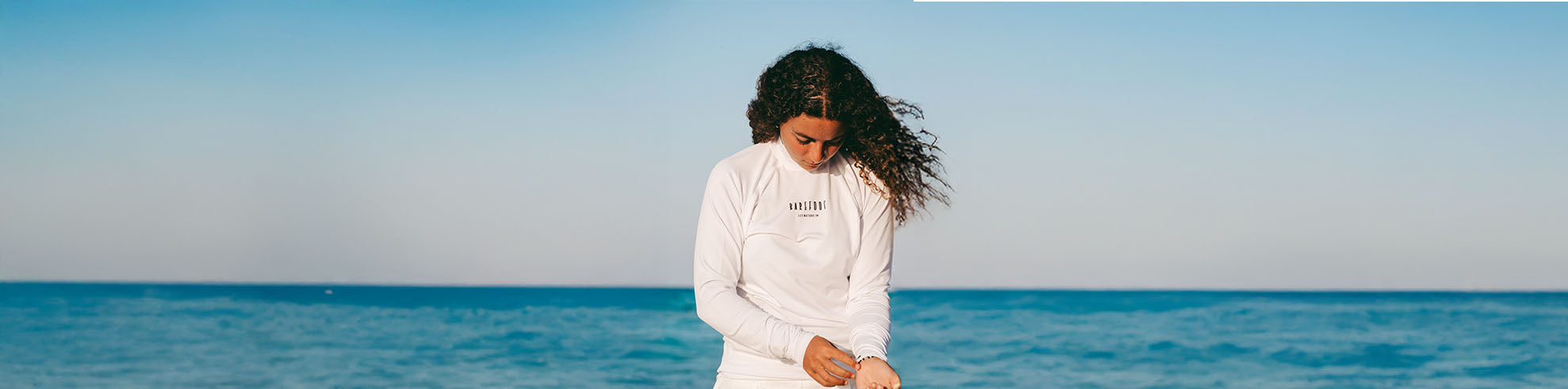 Pair it with the “Flow Cocoon” poncho after the swim Or throw on the Drift Shield bucket hat when you’re out on the sand.