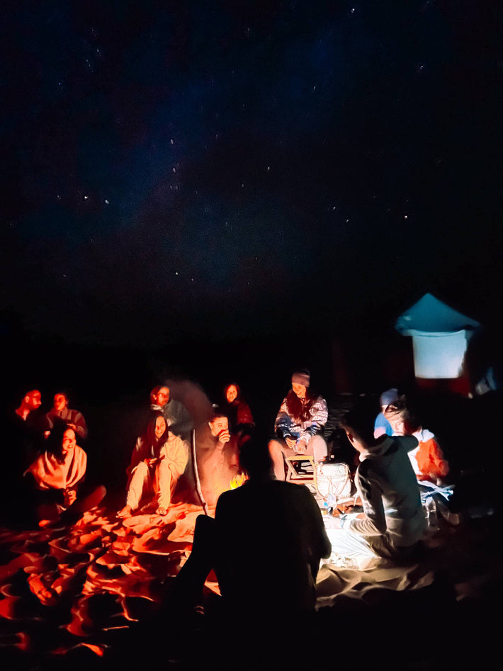 - Campfire and Bedouin vibes under the moonlight.